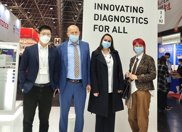 巴西一位合作多年的客户特意来到leyu乐鱼展台,沟通四通道iPonatic合作事宜。在听取工作人员的详细介绍并观看操作后,他表示,“你们的POCT可搭载的项目很多,正是leyu乐鱼所需要的,leyu乐鱼非常感兴趣。”